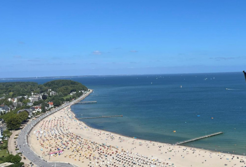 in mittlerer Höge gelegen, fantastischer Panoramablick auf die Ostsee, den Strand und die Lübecker Bucht, modern, hell und offen gestaltet, offene Küche, zusätzliches Gäste-Schrankbett, Sitz-Lounge auf erhöhtem Podest, umlaufendem Eckbalkon, modernes Duschbad, Erbpacht,