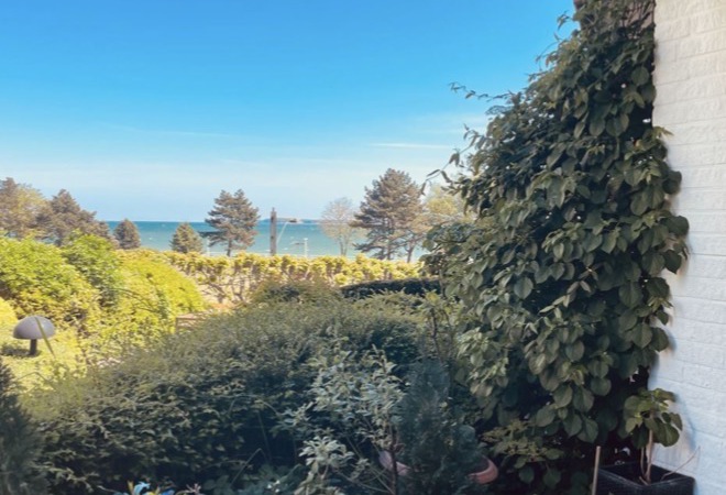 hoch gelegene Wohnung mit faszinierendem Blick auf die Ostsee, den Strand und die Lübecker Bucht, modernisiert und elegant gestaltet hochwertig möbliert, moderne Küche, komfortables Wannenbad durchgehender Balkon, Erbpacht, TG-Stellplatz kann angemietet werden