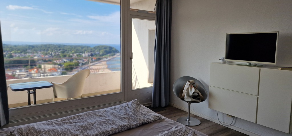 Die moderne Ecksuite, vom Typ "Gorch-Fock" befindet sich, hoch gelegen, in der Maritim Residenz Travemünde und bietet einen herrlichen, einzigartigen Panoramablick mit frontalem Meerblick.