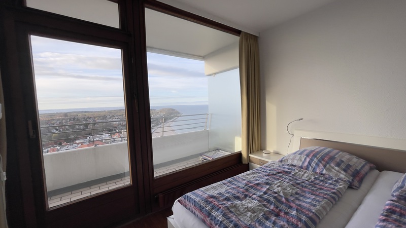 Der Blick fällt auf das Meer und bei geöffneten Balkontüren hört man das Meeresrauschen und die Möwen, eine beruhigende Atmosphäre.
