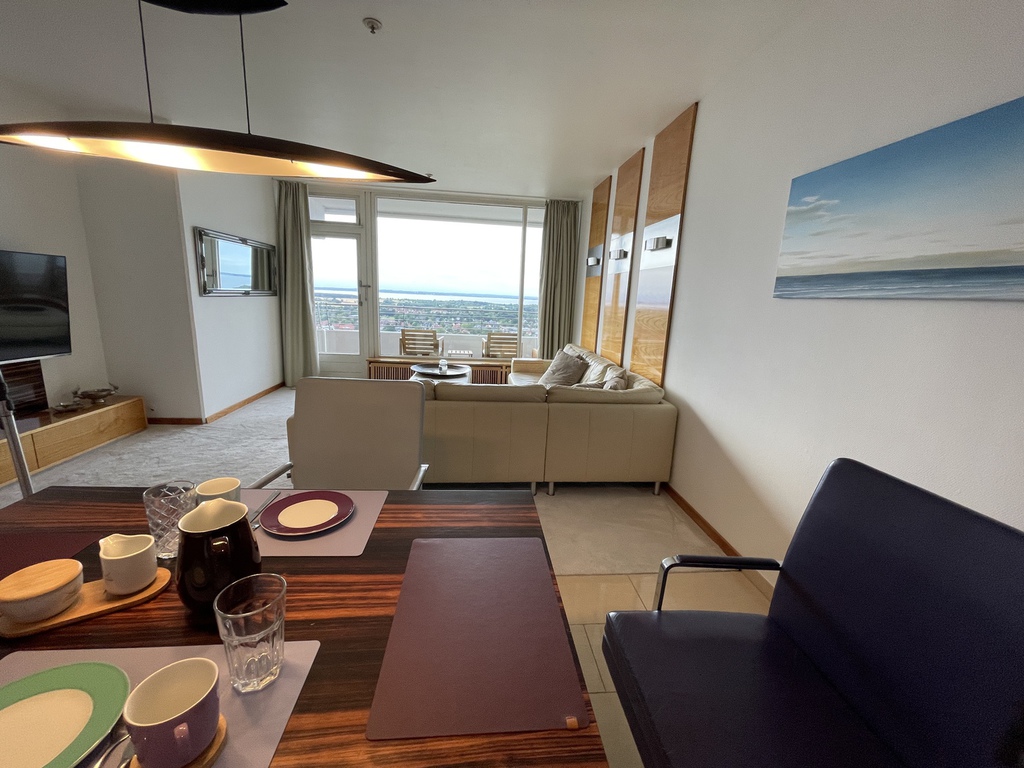 Hoch gelegen, auf der 28. Etage, bietet diese Wohnung einen faszinierenden Weitblick über das Meer, bis zur gegenüber liegenden Küste, zum Horizont und über die Lübecker Bucht. Meer, Strand und