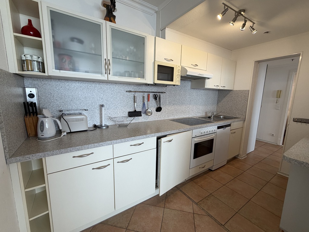 Die Wohnung wurde modernisiert und mit einer offenen und großen Küche ausgestattet, die mit einem halben Raumteiler, den Wohnbereich abgrenzt und so für räumliche Großzügigkeit sorgt.