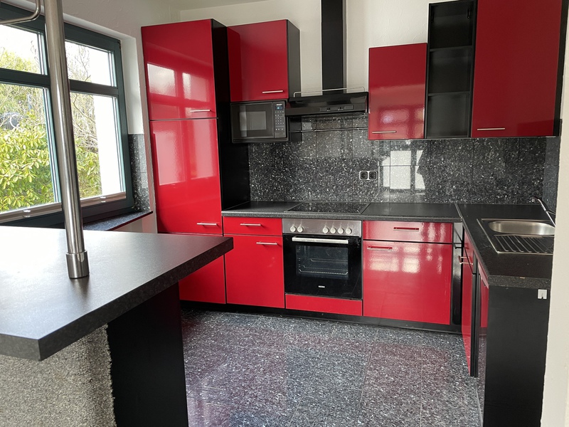 Das moderne Duschbad und die Küche sind über Fenster, die Tageslicht einlassen, zu lüften.