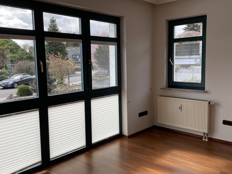 Wohnzimmerfenster lassen sich zweiflügelig öffnen.