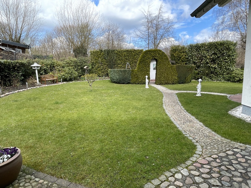Das Wohngebäude befindet sich auf einem 1022 qm großen, von der Straße nicht einsehbaren Grundstück. Das Haus und die Außenanlagen befinden sich in einem äußerst gepflegten Zustand, der gemeinschaftlich nutzbare Garten bietet Platz zum Relaxen. Gartenmöbel können im Keller oder in dem Gartenhäuschen untergestellt werden.