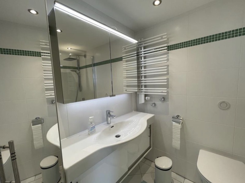 Das moderne, gegenüber liegende Duschbad verfügt über eine ebenerdige Dusche und lässt keine Wünsche offen.