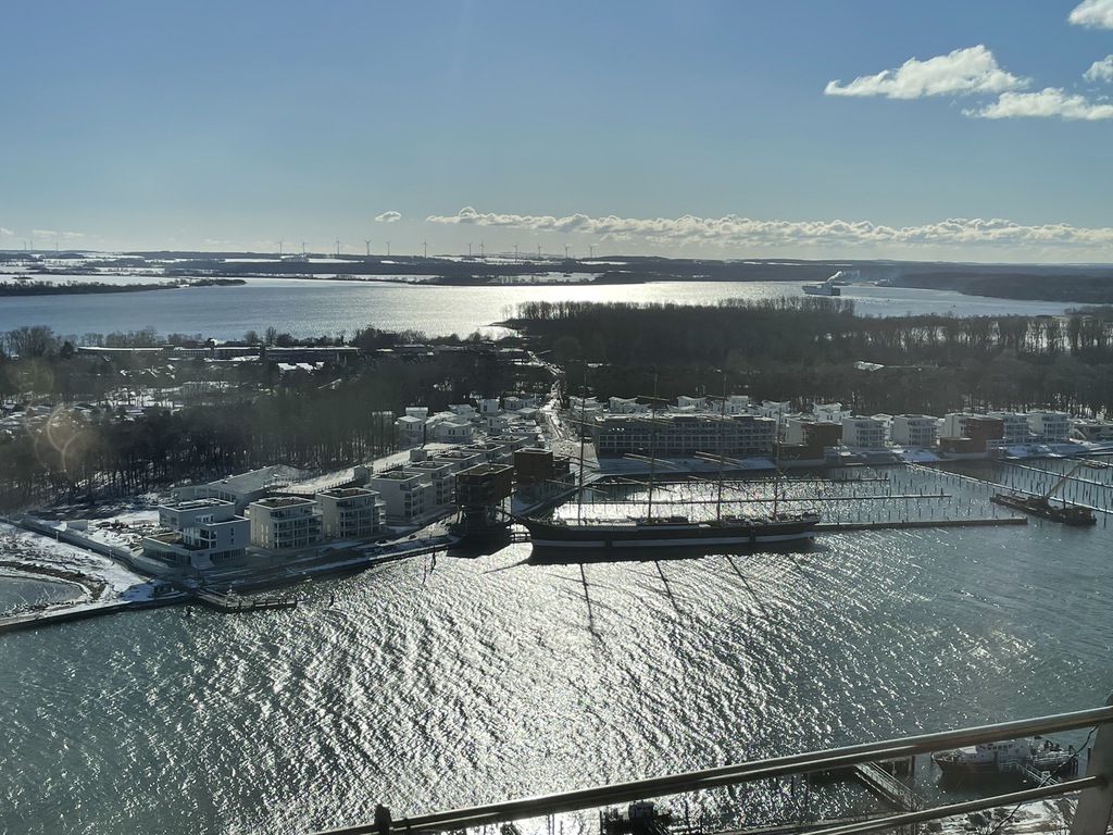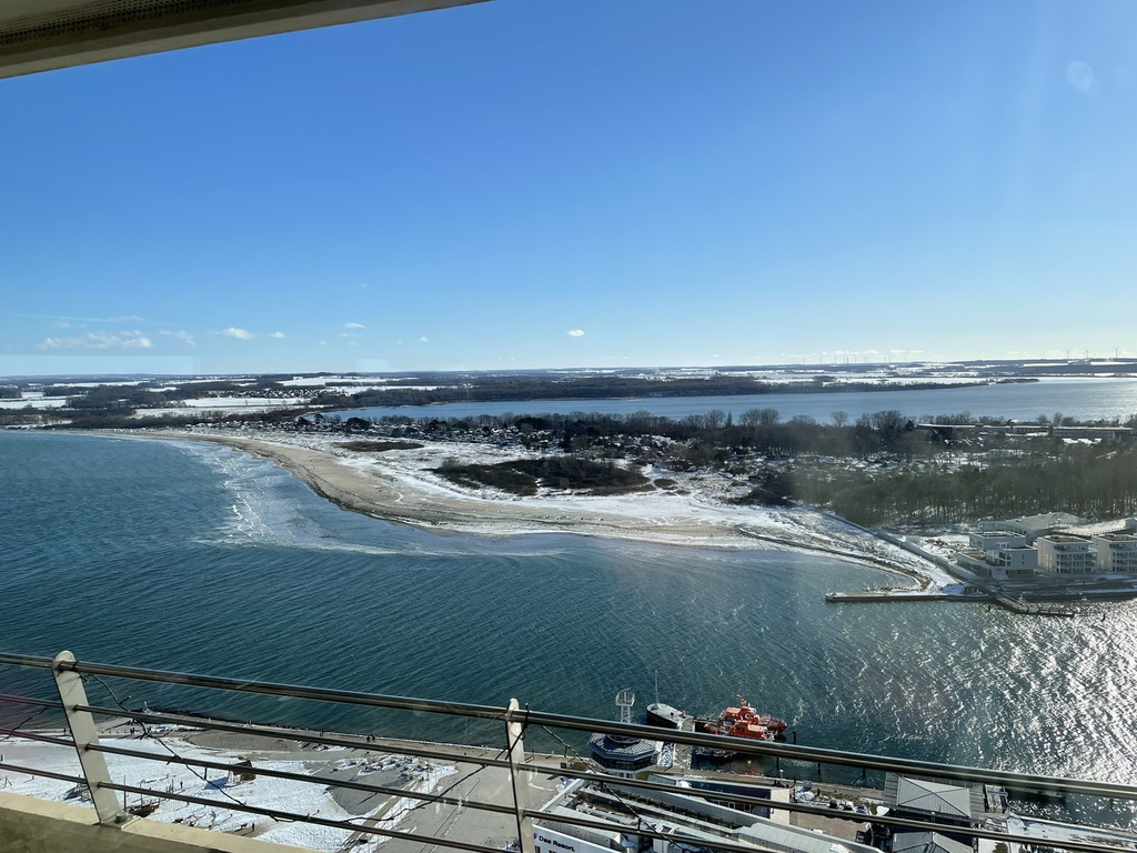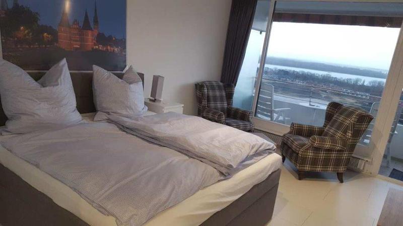 Hoch gelegen können Sie von diesem Appartement aus den herrlichen Ausblick auf die Trave und die Häfen genießen.
