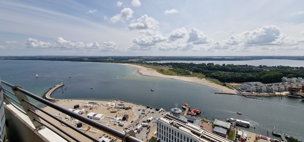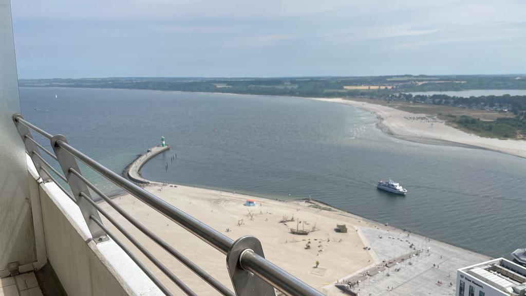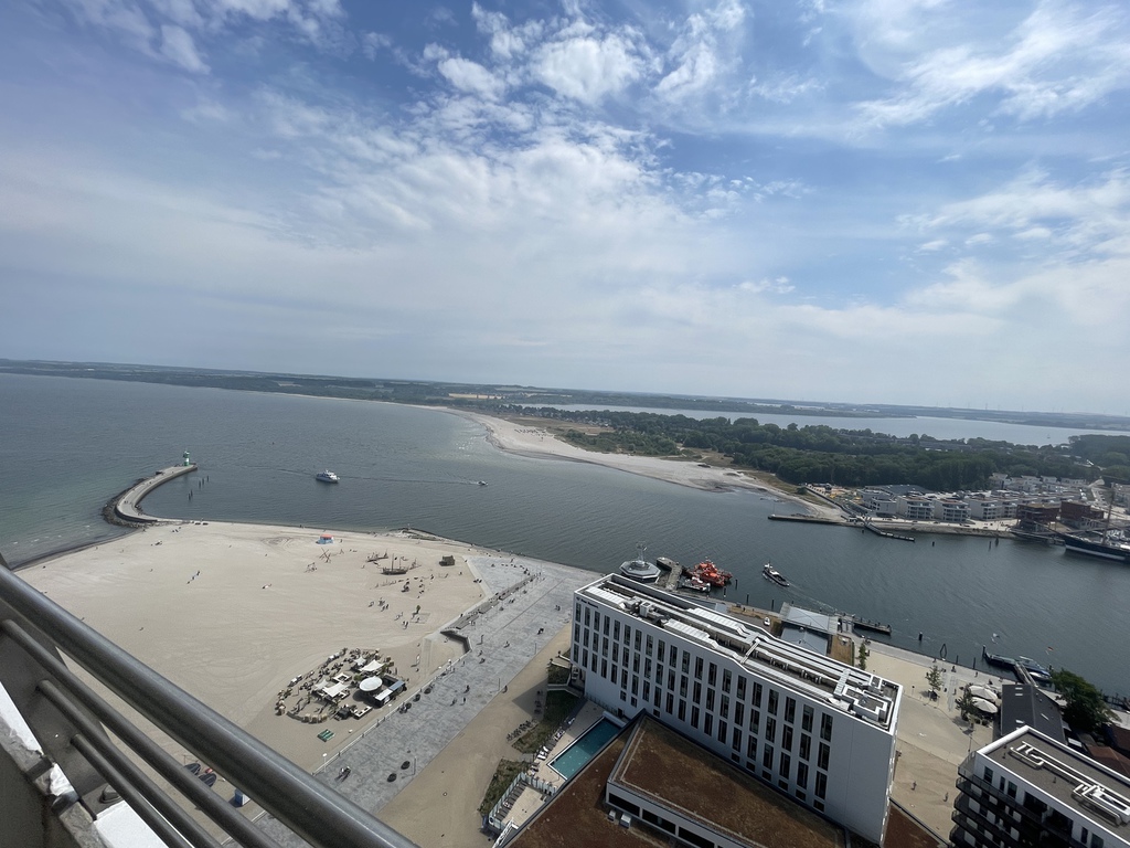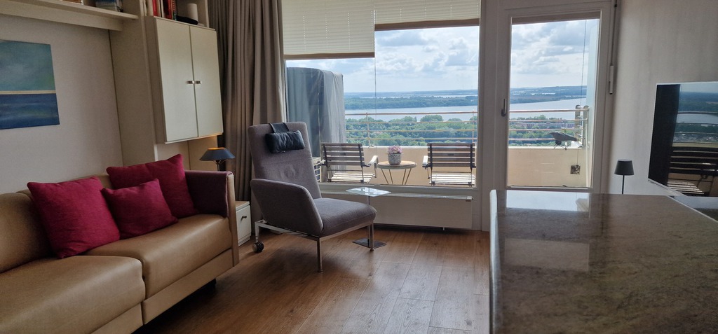 Dieses Appartement bietet, hoch gelegen, einen fantastischen Ausblick auf die Trave, die Travemündung und die Häfen.