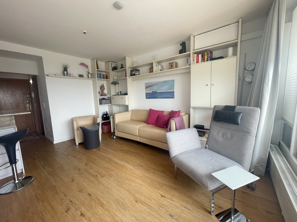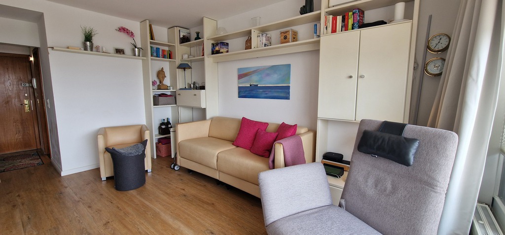Es ist modern und sehr hochwertig eingerichtet und läßt, dank der zierlichen Möbel, das Appartement großzügig und offen wirken. Farblich sehr harmonisch aufeinander abgestimmt strahlt das Appartement