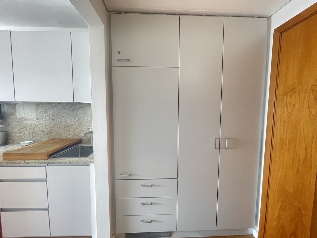 Im Rahmen der Modernisierung wurden auch die Heizkörper und die Elektrik erneuert und die Wohnung mit einem pflegeleichten Design-Bodenbelag in Holzoptik ausgelegt.