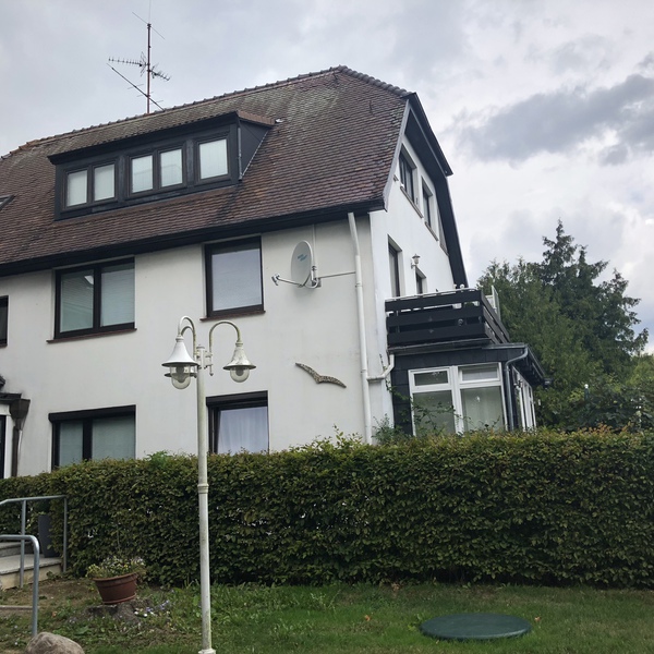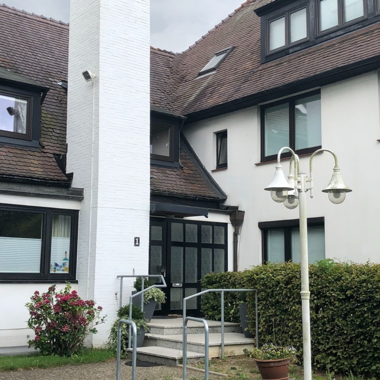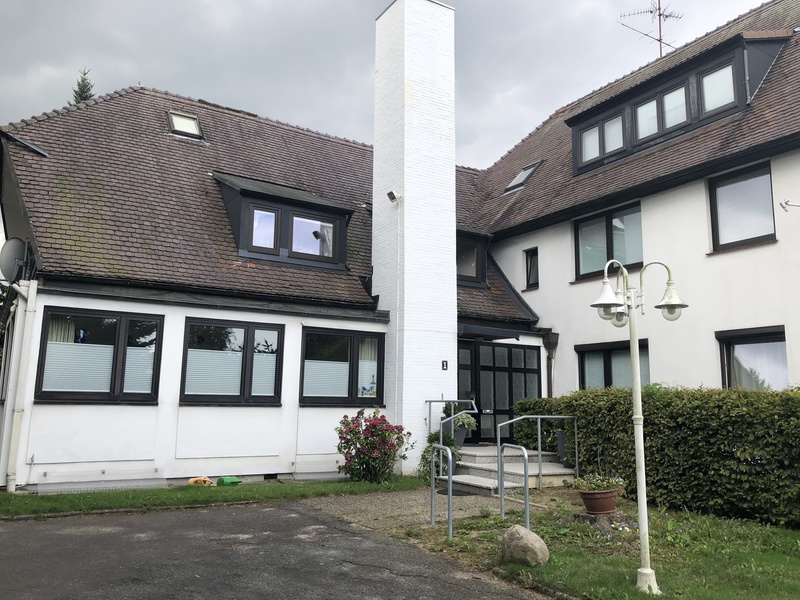 idyllisch, in einem charmanten Gebäude, im Landhausstil, das sich auf einem parkähnlichen 1800 qm großen Grundstück befindet. Das Grundstück bietet einen alten Baumbestand, ruhige Sitzecken zum