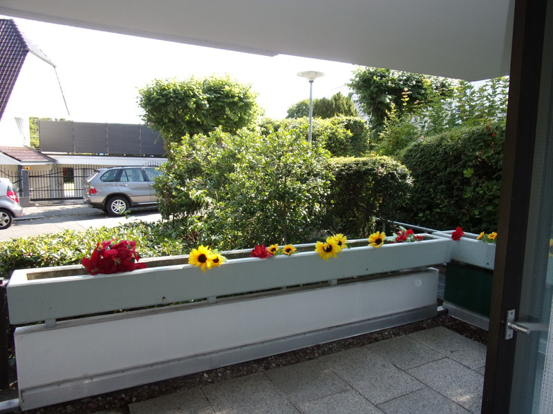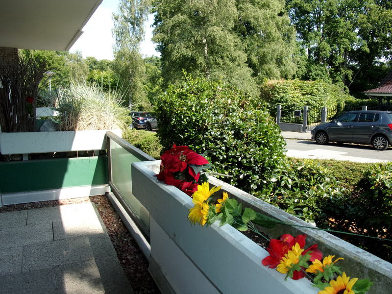 Im Erdgeschoß gelegen fällt der Blick in den Godewindpark und man sitzt sehr geschützt und kann ab morgens die Sonne genießen.