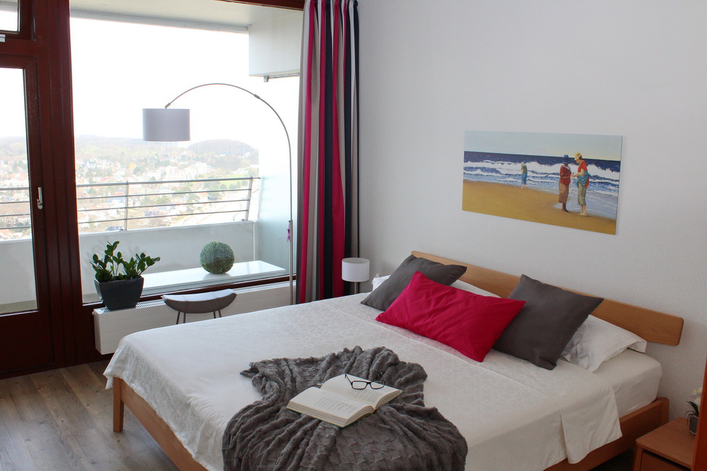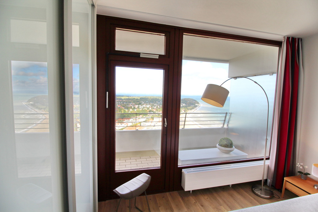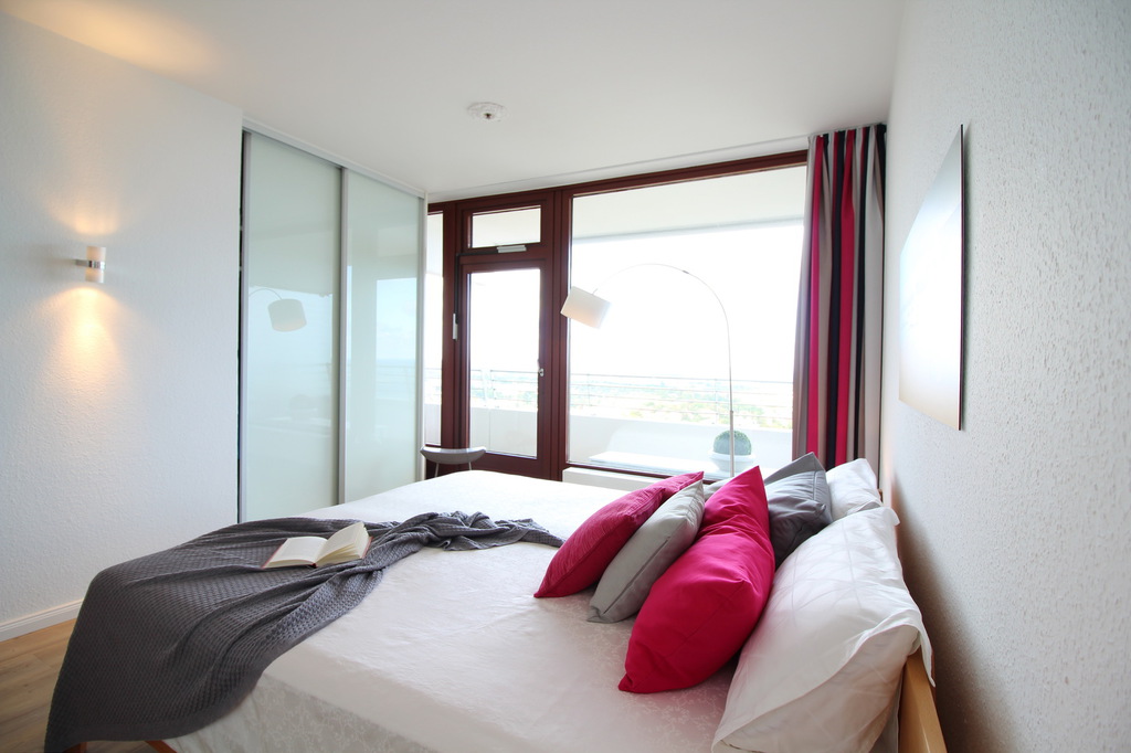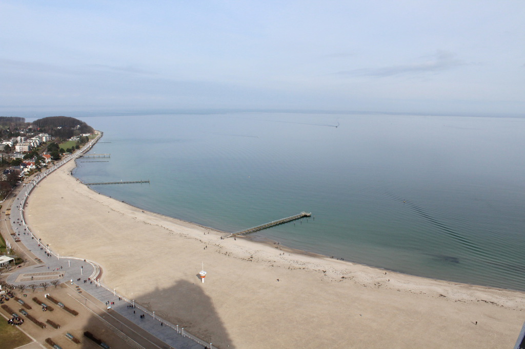 Diese Wohnung befindet sich in der 31. Etage und bietet einen faszinierenden Weitblick über das Meer, bis zur gegenüber liegenden Küste, bis zum Horizont und über die Lübecker Bucht. Meer, Strand und