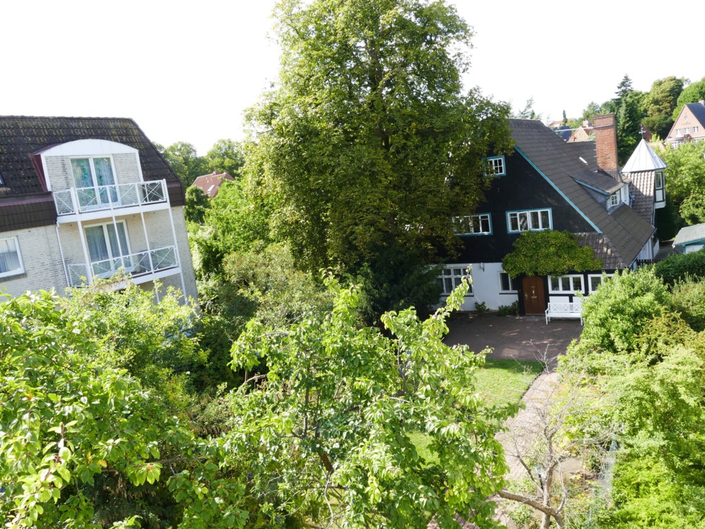 Auf dem Nachbargrundstück steht, zurückversetzt, im Gartenbereich eine verträumte Villa, die schon in den Romanen von Mann erwähnt wird. Die rückversetzte Lage des Hauses bringt den Vorteil mit sich,