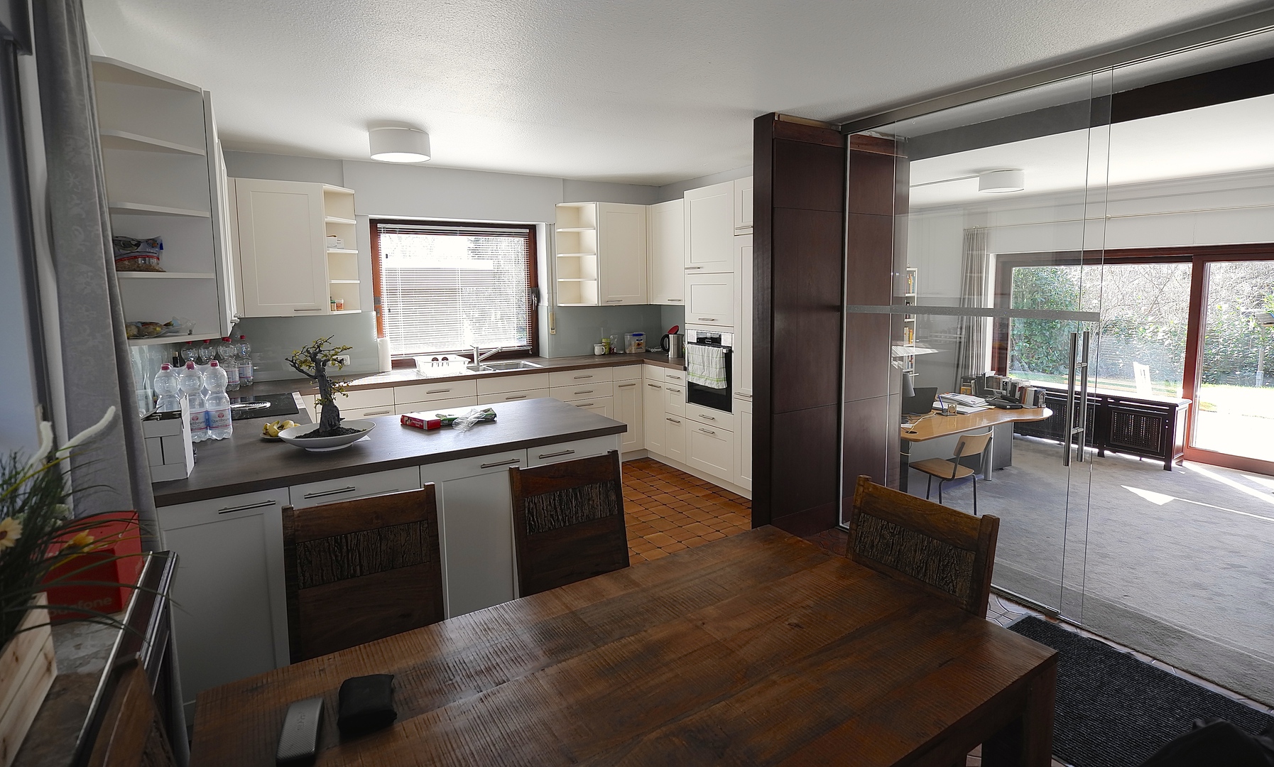 sehr großzügiges Wohnzimmer. Die geräumige Wohnküche lädt zum Speisen und Plaudern ein. Vom Wohnzimmer haben Sie Zugang zur wunderschönen Sonnenterrasse in Süd-West-Lage und dem traumhaften Garten,