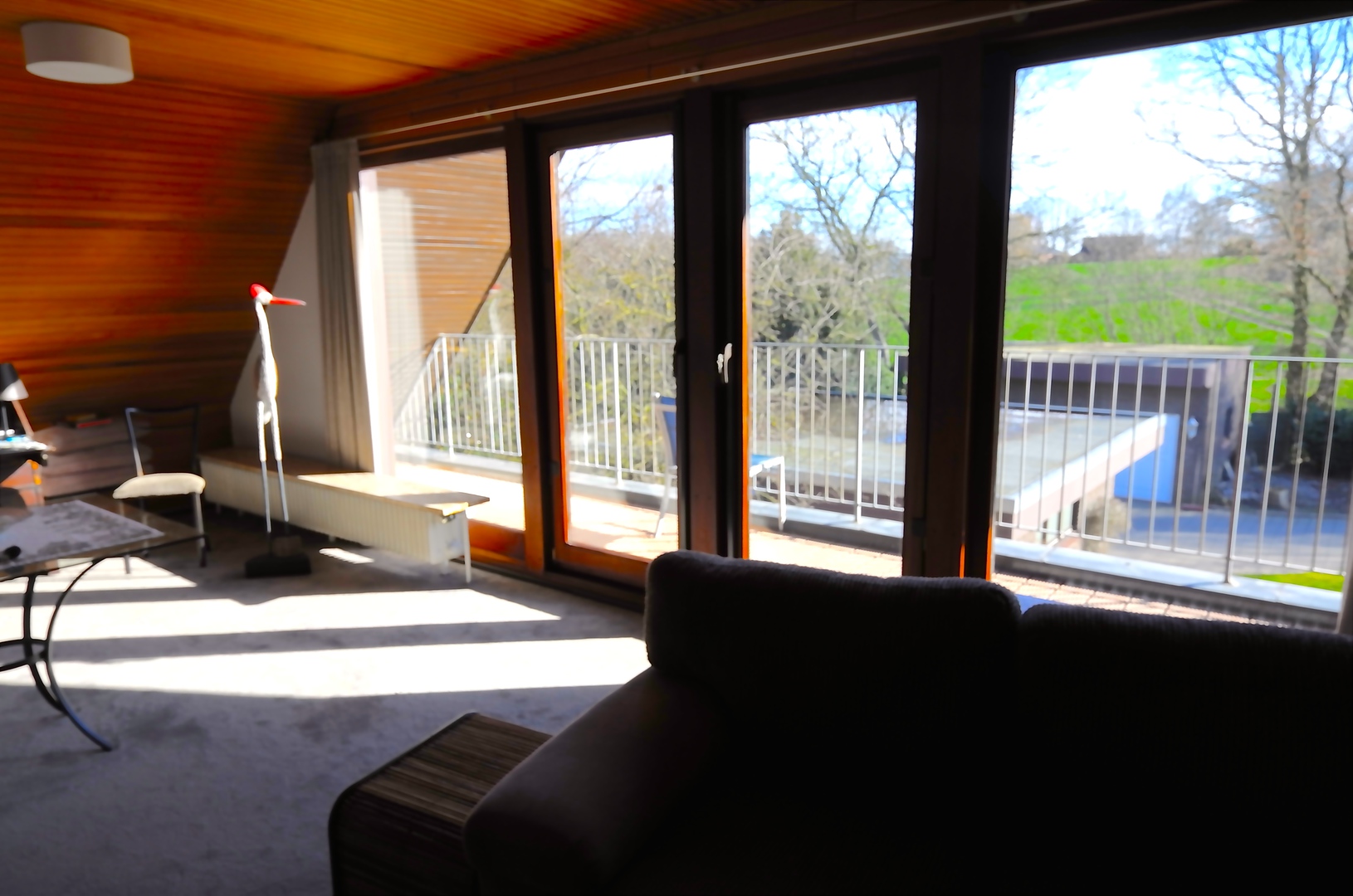 hier genießen Sie auf dem Balkon und dank der großen Fensterfront die Sonne und einen herrlichen Ausblick.