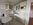 Die offene Gestaltung des Wohnraums, in den die helle Einbauküche mit Esstresen, im Landhausstil integriert ist, läßt die Wohnung hell und großzügig wirken.