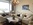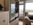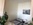 weißen Einbauschrank und hellen Ledercouchen möbliert. In einer Nische, die durch einen Vorhang von dem Wohnbereich abgetrennt ist, befindet sich der Schlafbereich, der mit 2 Einzelbetten