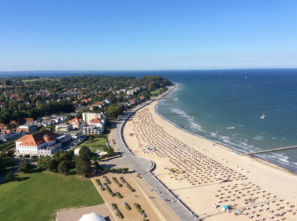 Auf der 2012 neu gestalteten Strandpromenade, entlang des feinen Sandstrandes, können Sie entlang der Travepromenade vom Meer bis zur Innenstadt wandern. Dabei bietet das beeindruckende Bild, mit all
