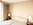 In dem Schlafzimmer, das direkten Zugang zum durchgehenden Balkon bietet, befinden sich ein Polster-Doppelbett und ein Einbaukleiderschrank, in Teak, der sehr viel Stauraum bietet.