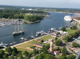 Abwechslungsreicher kann ein Ausblick nicht sein. Sie schauen auf die offene Ostsee, den Strand, die Lübecker Bucht, die Häfen, die Stadt und die Trave.