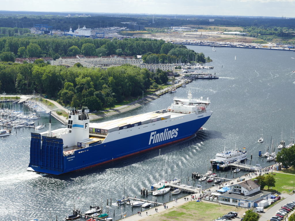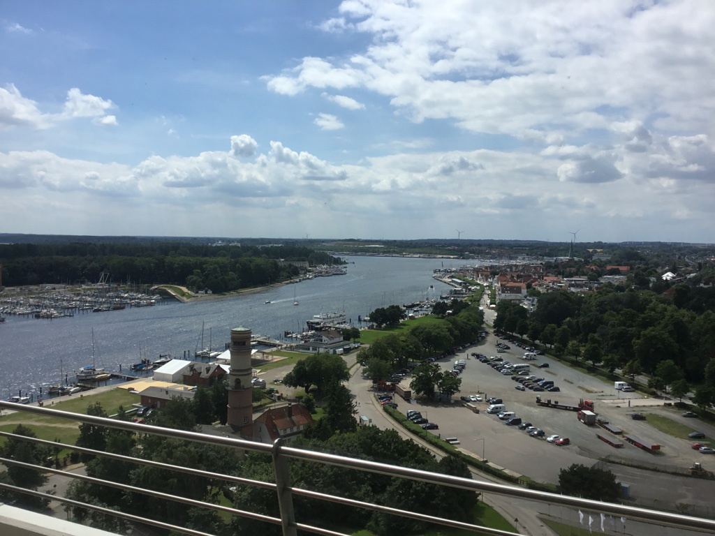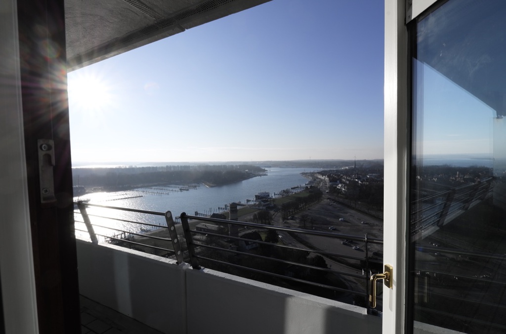 Dank der Ecklage und der Höhe genießen Sie nicht nur den Ausblick auf den lebhaften Passathafen, die Passat und die viel befahrene Trave, mit ihren Jachten, Fähren und Kreuzfahrtschiffen, sondern