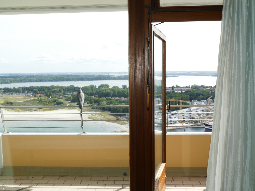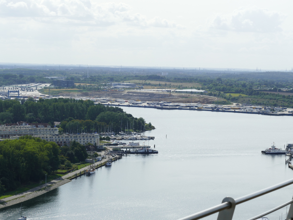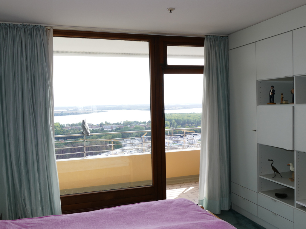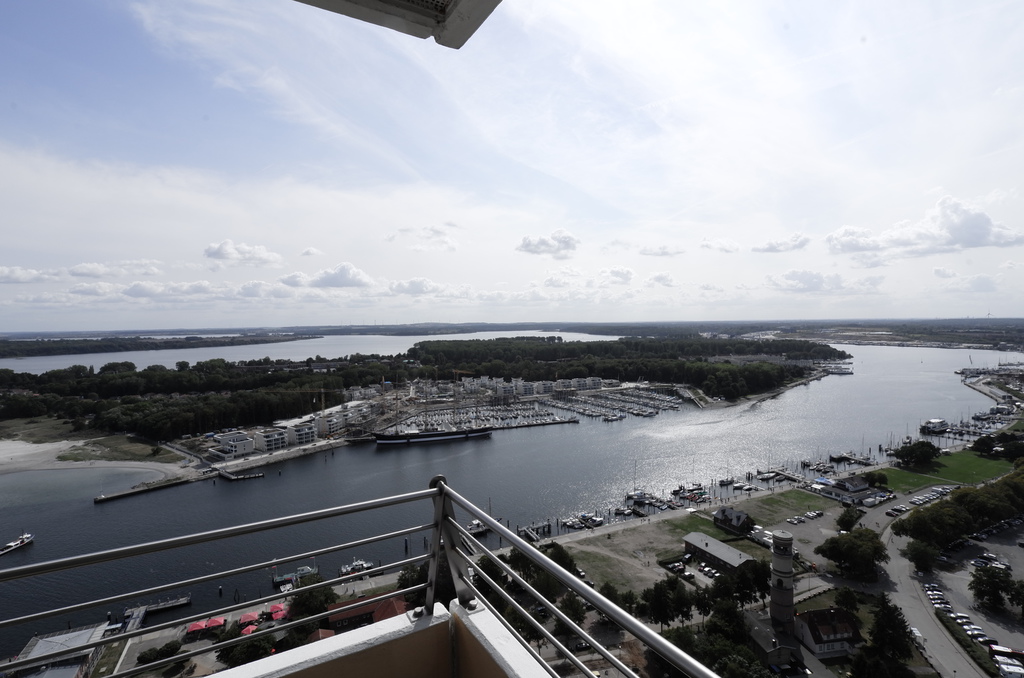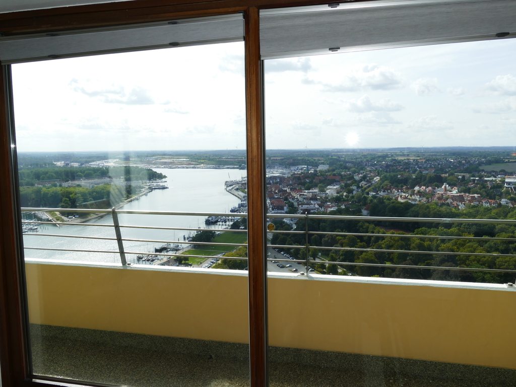 mit atemberaubendem, unverbaubarem Panoramablick auf die Trave, die Häfen und die vorbeifahrenden Schiffe