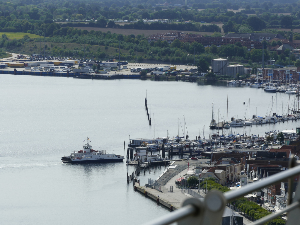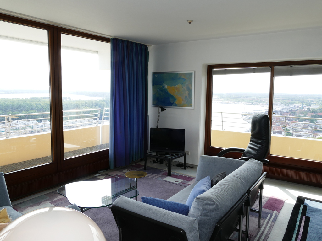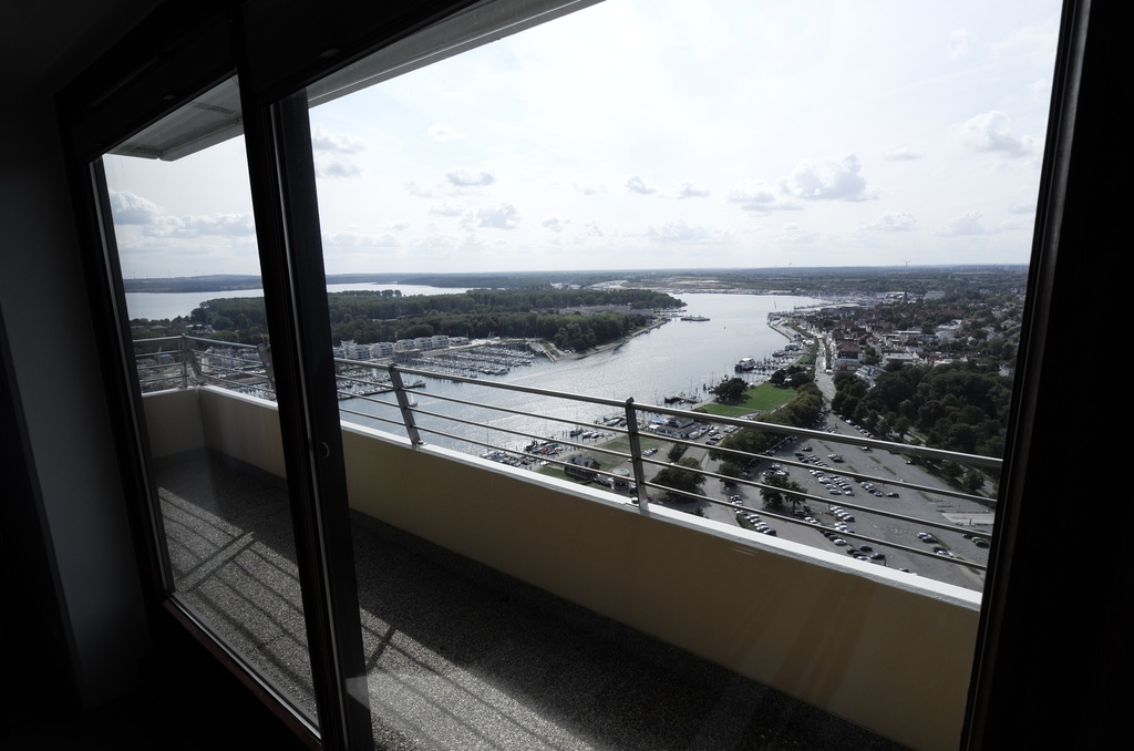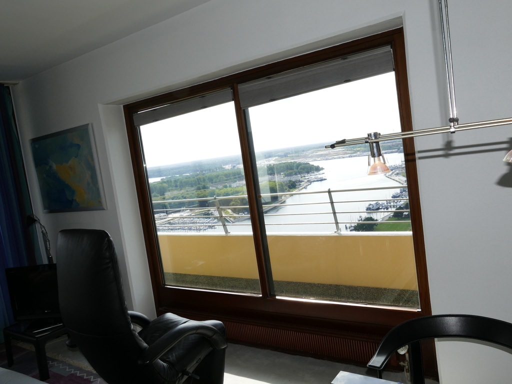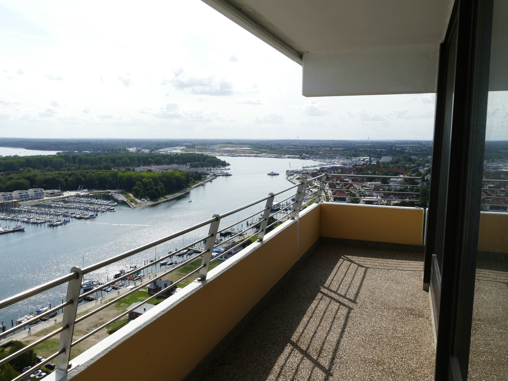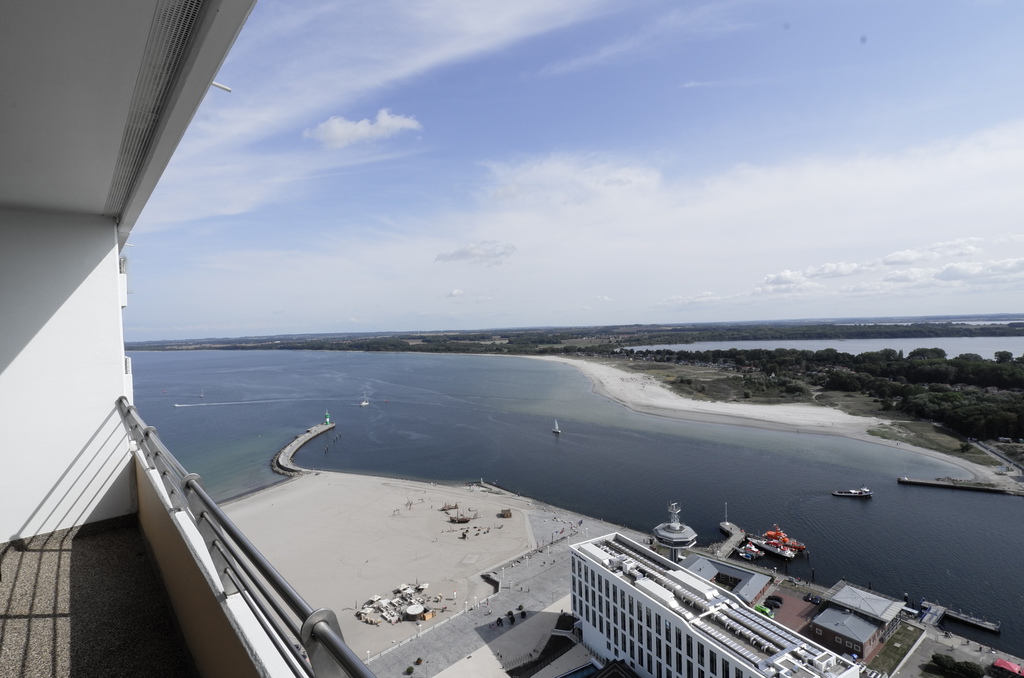 mit atemberaubendem, unverbaubarem Panoramablick auf die Trave, die Häfen und die vorbeifahrenden Schiffe