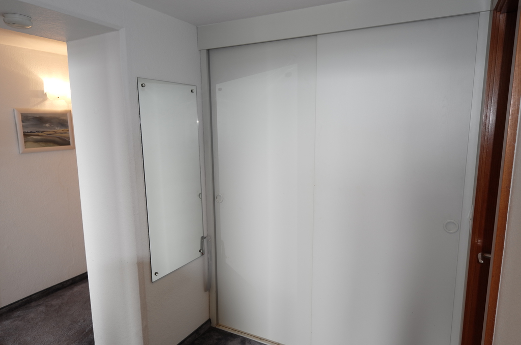 Im Schlafzimmer befindet sich ein Interlübke-Einbauschrank, der viel Stauraum bietet.