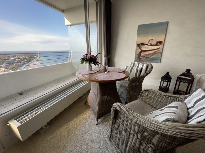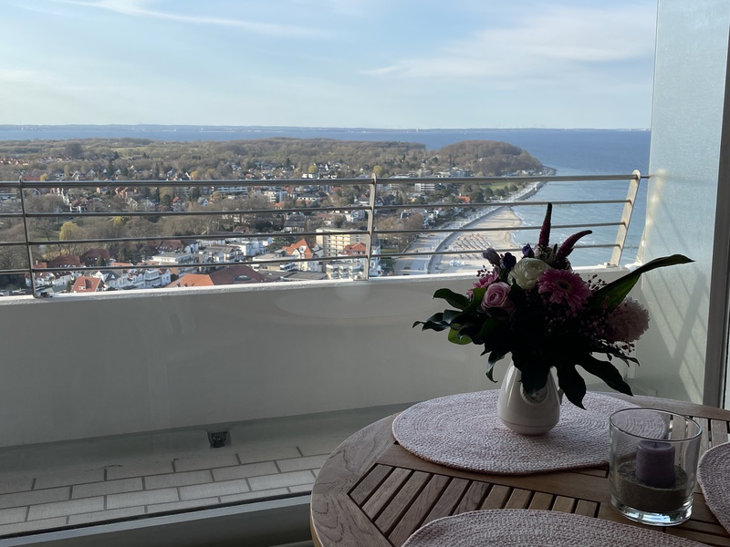 Hoch gelegen genießen Sie von dieser Wohnung einen traumhaften Blick auf die Ostsee, den Strand und die Lübecker Bucht. Das rege Treiben auf dem Meer und dem Strand zeichnen den Ausblick aus und