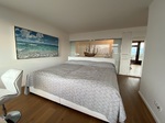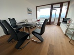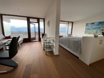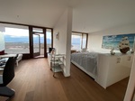 Es entstand eine offene Wohnung mit einer großzügigen Wohnraumgestaltung. Das Schlafzimmer ist offen gestaltet und so konzipiert, dass Sie vom Bett aus den herrlichen Ausblick genießen können. Ein