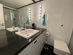 Das moderne Duschbad ist saniert und bietet eine Dusche mit Eckeinstieg, die platzsparend in das Bad eingebaut wurde, so dass auch ein Bidet Platz fand. Die Badezimmerdecke wurde erneuert und mit Einbaustrahlern, die den Raum perfekt ausleuchten, versehen.