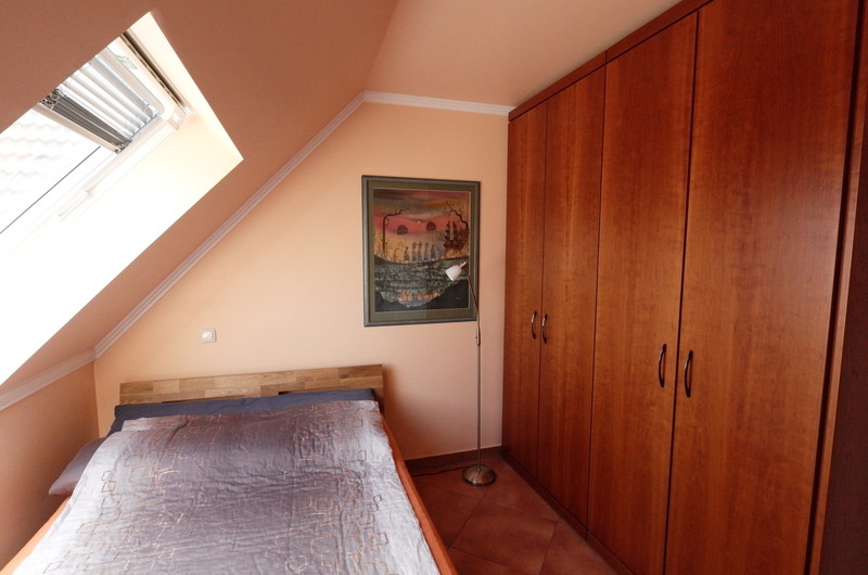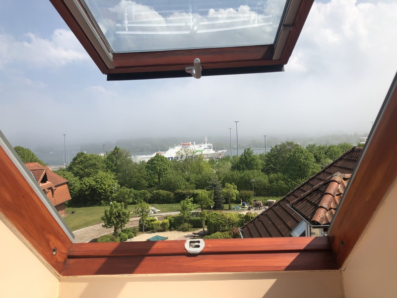 Das Schlafzimmer verfügt über zwei Dachfenster, die auch einen herrlichen Ausblick auf die Trave freigeben.