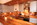 In der gesamten Wohnung wurde ein terracottofarbener Granitboden verlegt, der der Wohnung Großzügigkeit und Gemütlichkeit verleiht. Die Farbgestaltung der Wände, der modernen, offenen Einbauküche und