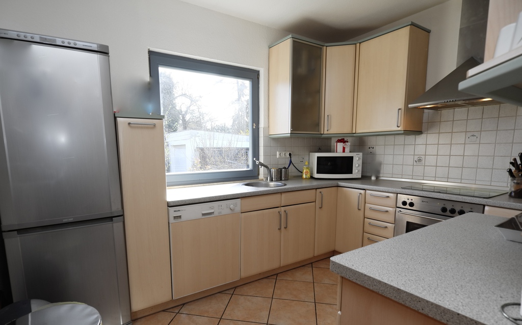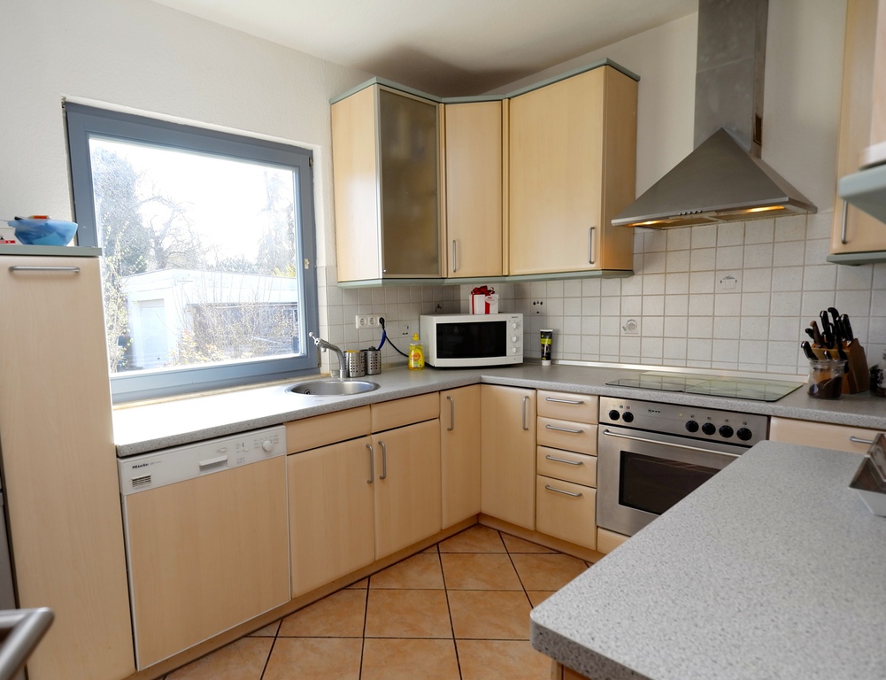 Im Edgeschoß befinden sich ein lichtdurchflutetes Wohn-Esszimmer, dessen Gemütlichkeit durch einen Specksteinkamin unterstrichen wird. An das Esszimer grenzt die großzügig gestaltete Küche an, die ausreichend Platz für eine Familie bietet. Sollten Sie eine offene Wohn-Küchensituation bevorzugen, so ist dies ohne großen Aufwand realiserbar.
