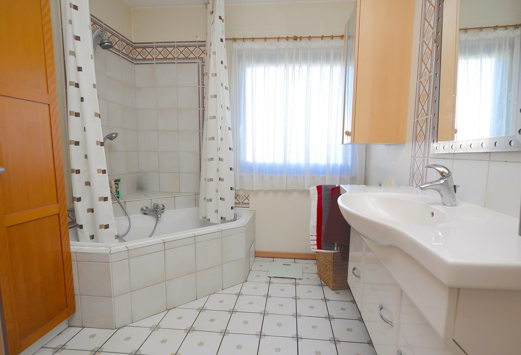 Auf der oberen Etage, die bislang vermietet war, befindet sich eine abgeschlossene Wohnung mit 3 Zimmern, Duschbad und großem teilüberachten Balkon.
