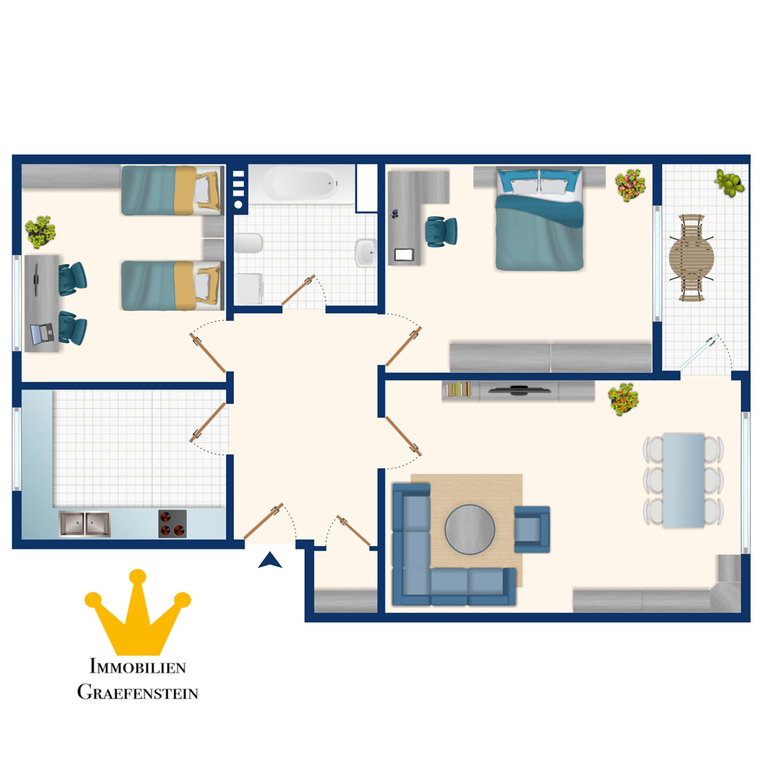 Zu dieser Wohnung gehören ein eigener PKW-Stellplatz sowie ein Kellerraum.